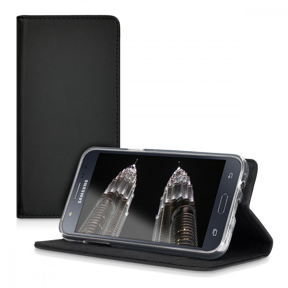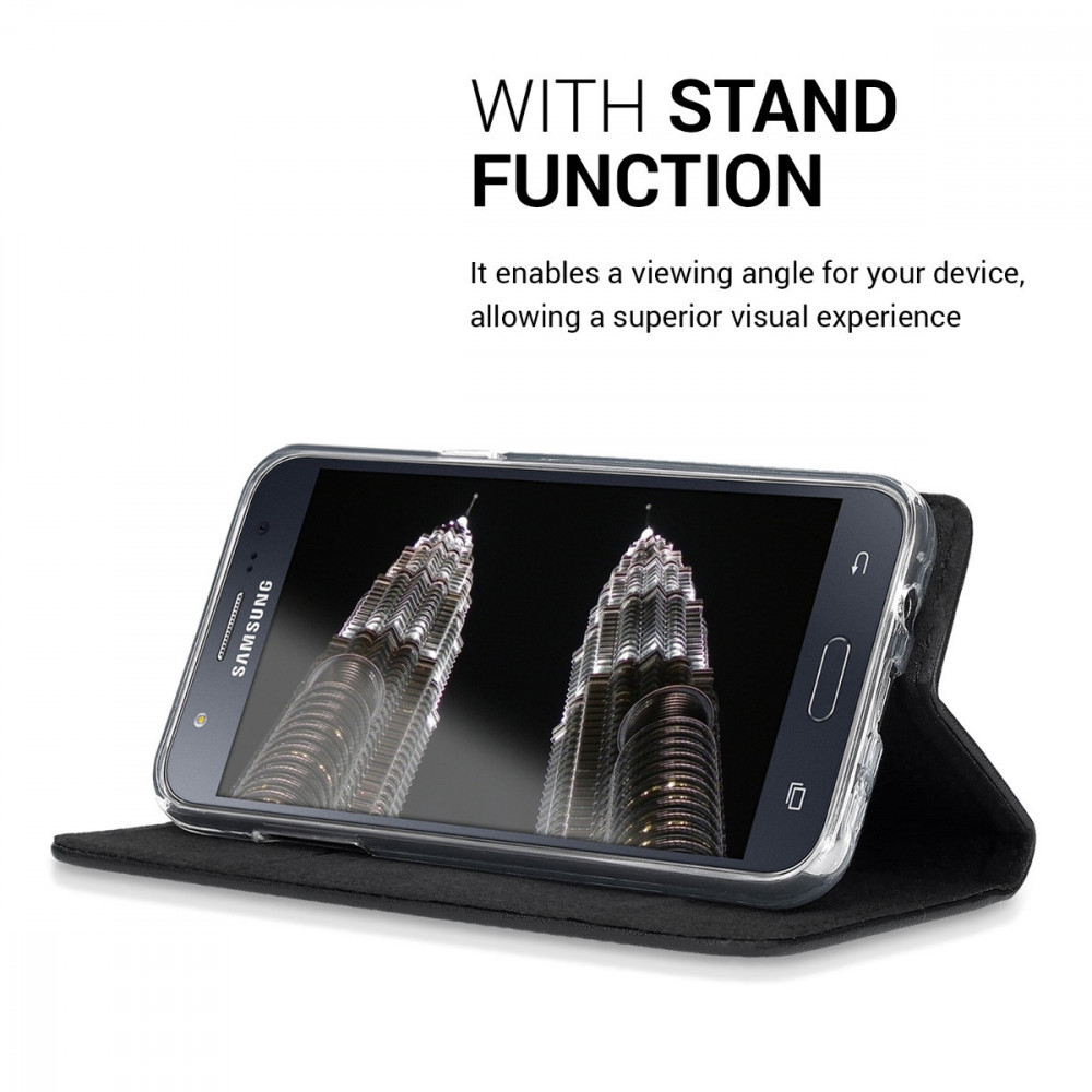 Husa pentru Samsung Galaxy J5, Piele naturala, Negru, 39196.01