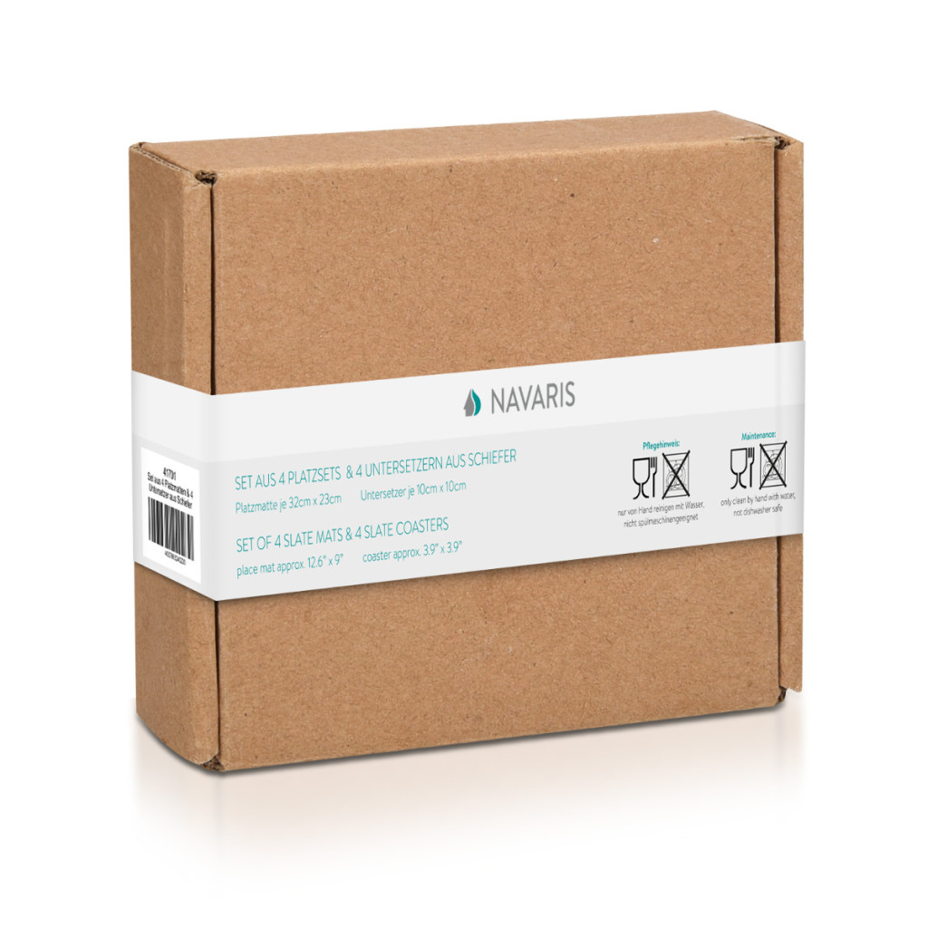 Set platouri ardezie Navaris, 4 placemats 32x23 cm + 4 coasters 10x10 cm, negru, ardezie/EVA