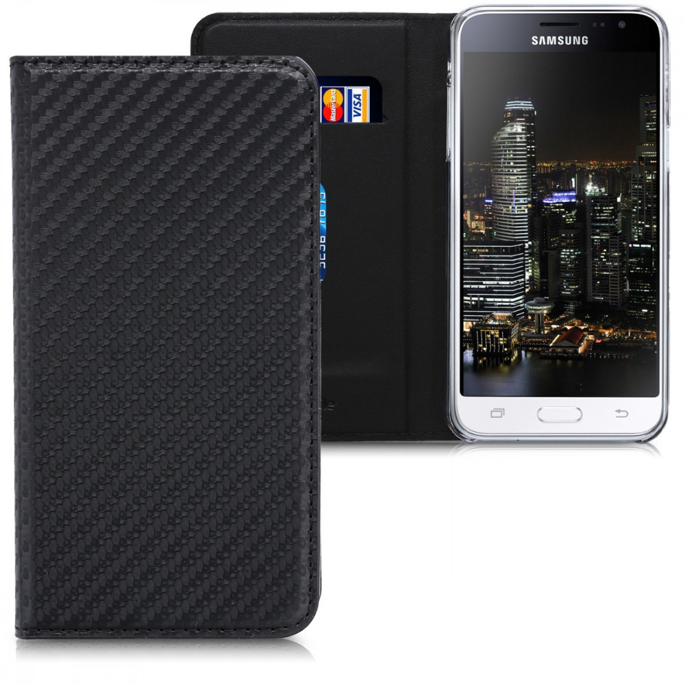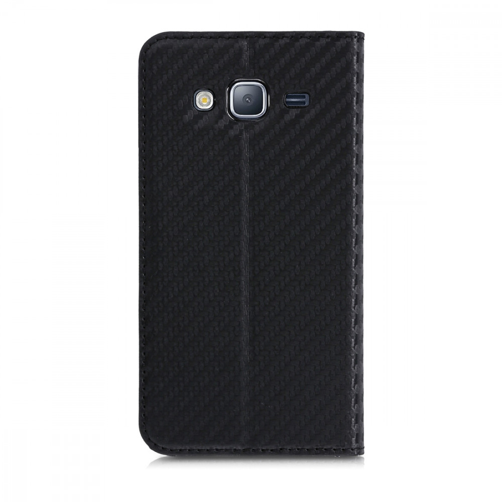 Husa pentru Samsung Galaxy J3 (2016), Piele ecologica, Negru, 45157.01