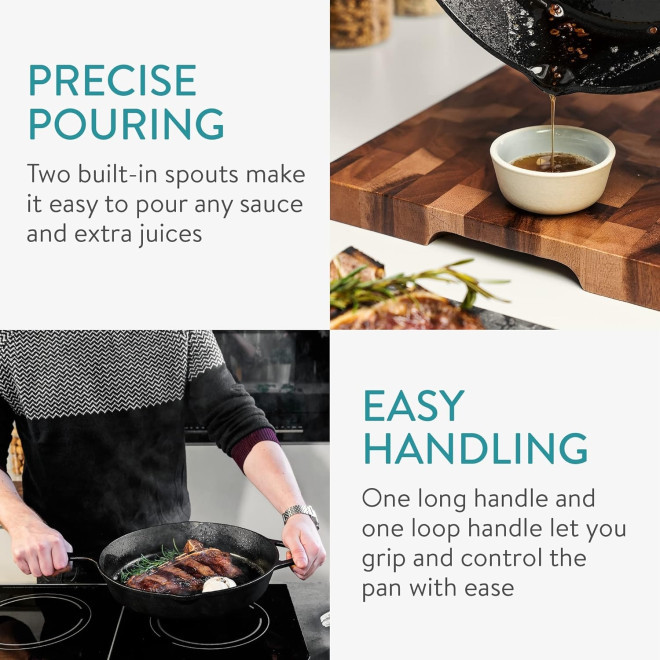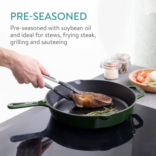 Tigaie adanca rotunda din fonta cu maner Navaris - 30 cm, Verde inchis, 53784.02