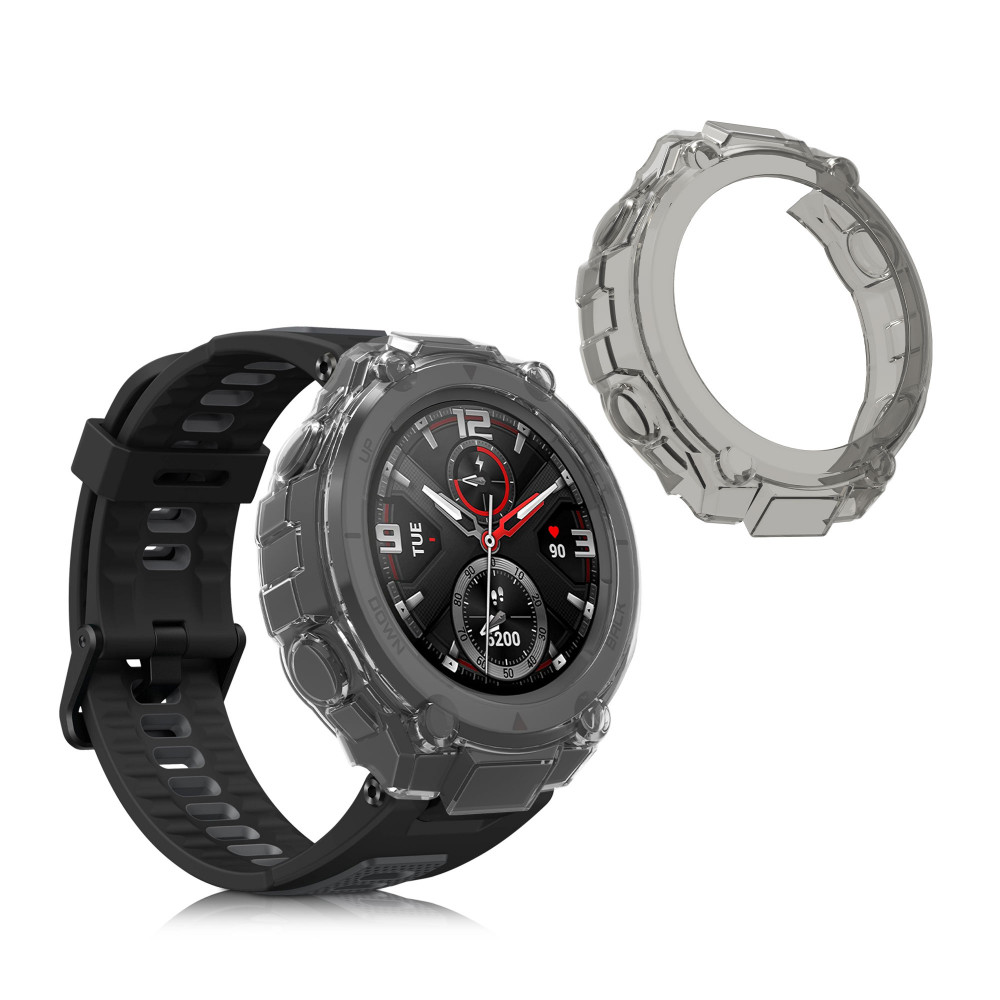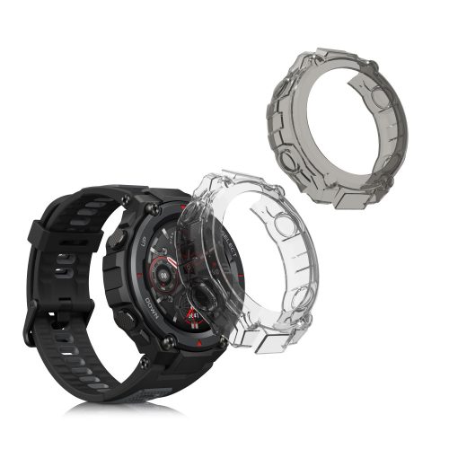 Set 2 Huse pentru Huami Amazfit T-Rex/Amazfit T-Rex Pro, Kwmobile, Negru/Transparent, Silicon, 58459.02