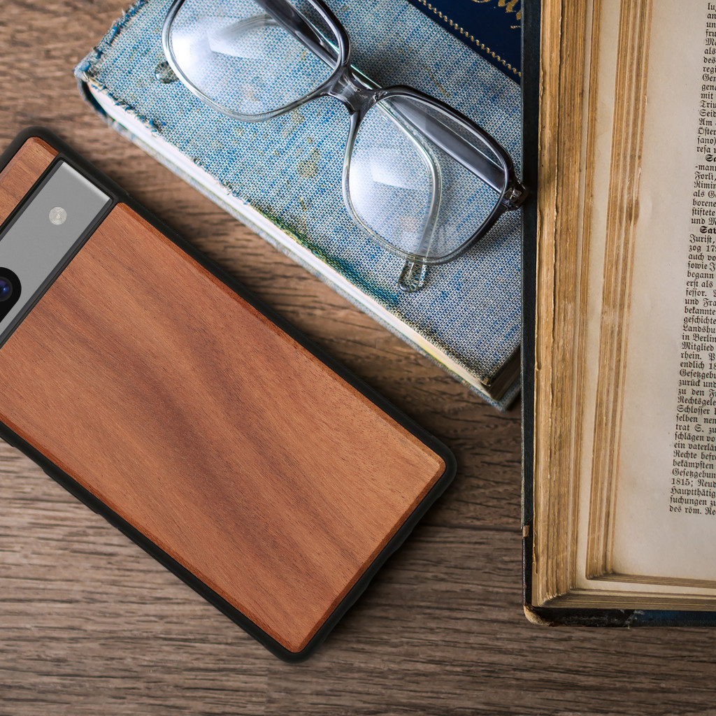 Husa Kwmobile pentru Google Pixel 7a, Maro, Lemn/Silicon, KWM000019YJ004C