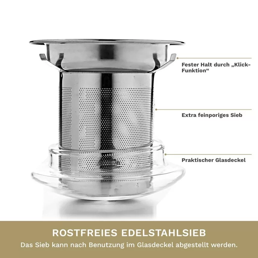 Pahar pentru ceai Creano All-in-One, 400 ml, cu infuzor din inox si capac din sticla
