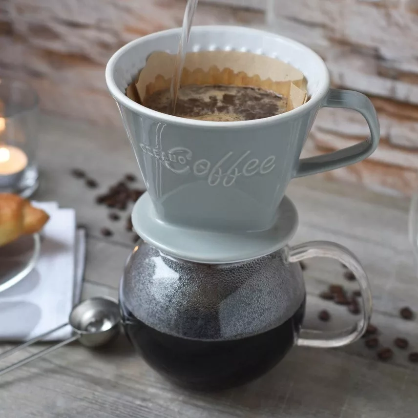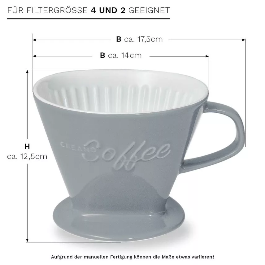 Filtru cafea Creano din portelan, marimea 4, pentru filtre 1x4, baza stabila, gri piatra