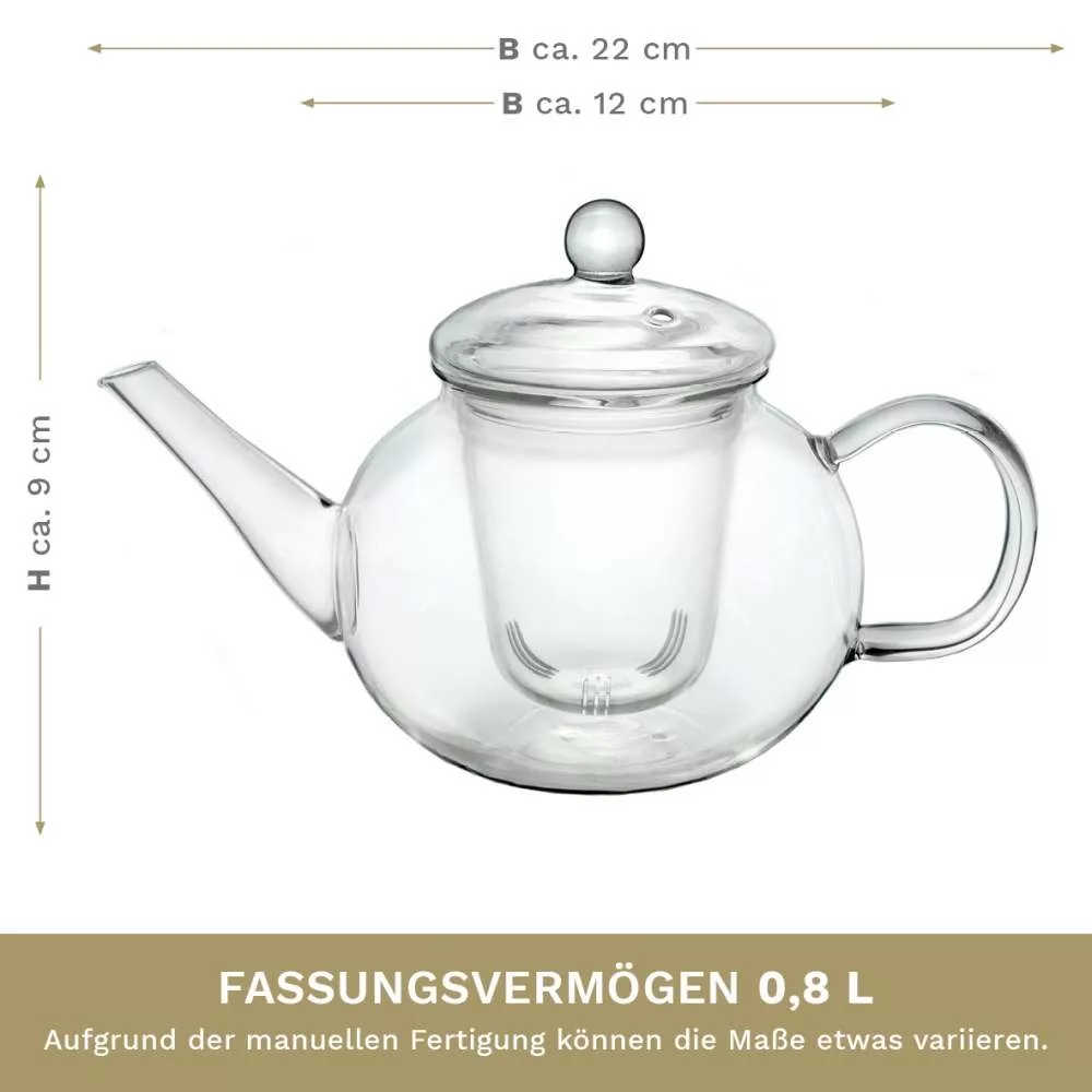 Ceainic din sticla Creano, 0,8 L, cu infuzor din sticla si capac, pentru ceai vrac